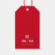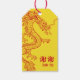 A unique set of gift tags tailored to your dragon and phoenix-themed wedding. They feature a stylized dragon on the front against a gold backdrop along with a symbol for gratitude and thanks. On the reverse side, it features double happiness symbols over the names of the happy couple and the date of their special event.