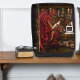 A bold fantasy painting featuring a red dragon seated in his cozy library lair immersed in the world of podcasting, surrounded by shelves of ancient books, storytelling artifacts, mystical objects, skulls and creative tools. This scene blends classic fantasy atmosphere with modern media culture, capturing the spirit of voice, imagination, and long-form storytelling. Perfect for podcasters, content creators, fantasy fans, and anyone who loves mythic imagery with a modern creative twist.