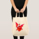 A strong tote bag in 'natural' with a red dragon design made from a handpainted paper collage.