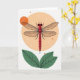 Designed with a striking red dragonfly at the center, this card keeps the focus on a simple moment from nature. Its long, segmented body is deep crimson with a thin black outline, and the wings spread wide with fine black line patterns that look like lace. Behind it sits a large soft peach circle, like a warm sun or moon, giving the whole scene a calm glow. Small dots in white and deeper orange drift across the circle, adding a gentle sense of movement. At the bottom, two emerald green leaves with dark outlines and visible veins ground the design and make it feel steady and real. There isn’t any text on the front, which leaves space for you to write your own message and make it personal in your own words ❤️. It feels meaningful to give because the dragonfly suggests care, attention, and the kind of quiet love that doesn’t need a lot of fuss 🥰. Hope it helps you share your Valentine’s Day sentiments with someone you care about.