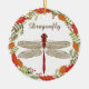 The red dragonfly in the center of the wreath which is made of fall leaves and berries. The text is customizable. The back of ornament has the same wreath and dark chocolate brown texts are customizable. This is a digital illustration.