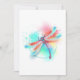 Red, flying, artistically drawn, in bright colors with textured iridescent, blue wings on white background, painted over with splashes of watercolor paint. Bright red dragonfly.