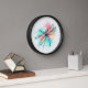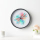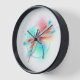 The size of the clock is dramatic and the abstract alcohol ink design is soothing and intricate at the same time. I chose the black frame that adds pop to the blue and gold design. The gold printing would be better in a slightly darker or larger font. I love it and I’m looking for just the right place in ny new apartment. I would recommend this clock for a personal gift or a present. I feel that the quality is excellent for the money! I’m a bit of a clock nut so I’m pretty particular about my purchases. The clock is larger in diameter than many if the clocks I have, so it stands out very well. I think a slightly darker printing color and a moderately larger size would best suit a professional decor or add more impact in a work place item.