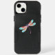 Red, flying, artistically drawn, in bright colors with textured iridescent, blue wings on white background, painted over with splashes of watercolor paint. Bright red dragonfly.