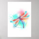 Red dragonfly on watercolor background poster