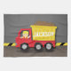 Design features a cute little builder boy in a safety hat and orange vest driving a red dump truck. Design is treated with a shadow effect that makes the design pop. A yellow and black slanted stripes pattern in the background which is commonly found in construction zones and sites Great for boys who love construction vehicles and truck toys! Personalise with child's name to make it extra special!