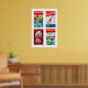 Red Dutch Matchbox Labels Grid Print, Vintage Poster