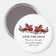Perfect for a sophisticated fantasy tabletop game themed wedding is this nerdy and unique Elegant Dragons Save the Date Magnet featuring a vibrantly colored pair of red dragons. Easy to customize, simply add your wedding details in the text fields provided. Click "Customize It" to find more personalization options.