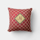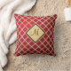 Red Elegant Gold Diamond Pattern Monogram Throw Pillow