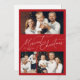 Red Elegant Script Merry Christmas Family 3 Photo Holiday Card