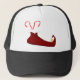 A Red Elf Slipper with Red and White Striped Candy Canes on a white background.