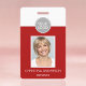 Add your own Logo Professional Corporate Work Name, Photo and Job Title Red and White ID Photo Vertical Business Badge. This design is simple and easy to use by changing your first and last name as well as your job title and business head shot.