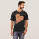 My 11 yo wore adult XL (5’7” 165#). The 8yo is small framed. She wore adult small and tied it in the back. Grandma wore adult large with long sleeve shirt underneath. Tall girl adult medium. Dark haired male adult large. Good quality dark Heather gray, Gildan brand shirt. -it was next up from basic choice and cost about $20 per shirt. Not too thick or thin. Washed and dried well, no major shrinkage. Not see-through. Can wear a bra under it fine. Screen print is just as shown and well done, front and back.