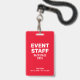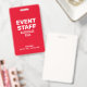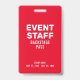 Red Event Staff Backstage Pass ID Badge. A personalized badge with an editable template for special events. Can be used by employees as an access pass or stage pass. Check out the rest of the collection for other design variations.