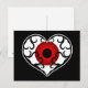 Cute and funky gothic elegant scrollwork heart with a weird red eyeball in it and red trim on a post card.