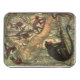 Vintage illustration wild animals primates design featuring red faced spider monkeys playing and swinging from the trees in the jungles of the rainforests. Louis Sargent illustrator, from "My First Book of Animals" by Lena Dalkeith, c. 1918. The red-faced spider monkey, aka the Guiana spider monkey, is a species of spider monkey found in the rain forests of northern South America with a pink face and black fur. Because of its ability to climb and jump, this monkey tends to live in the upper layers of the rainforest and forages in the high canopy. This monkey faces extinction due to hunting and habitat loss and is listed as vulnerable.