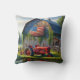 Red Farm Tractor With American Flag On a Barn Throw Pillow