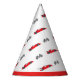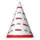 Fast one racing theme birthday party inspired red retro racing cars and checkered black and white flags party hats. Perfect for racing theme and car theme birthday parties.
