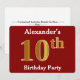 Red, Faux Gold 10th Birthday Party + Custom Name Invitation