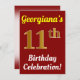 Red, Faux Gold 11th Birthday Celebration + Name Invitation