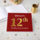 This guest book design features the ordinal number "12th" with a faux gold-like appearance. It also features a custom name, and a red colored background. It could be used at a party for somebody celebrating their twelfth birthday. [~Z0000055]