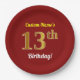 Red, Faux Gold 13th Birthday + Custom Name Paper Plates