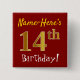 Red, Faux Gold 14th Birthday, With Custom Name Pinback Button