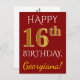 Red, Faux Gold 16th Birthday + Custom Name Postcard