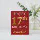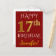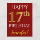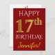 Red, Faux Gold 17th Birthday + Custom Name Postcard