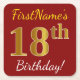 Red, Faux Gold 18th Birthday + Custom Name Square Paper Coaster