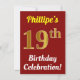 Red, Faux Gold 19th Birthday Celebration + Name Invitation