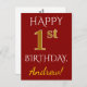 Red, Faux Gold 1st Birthday + Custom Name Postcard