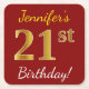 Red, Faux Gold 21st Birthday + Custom Name Square Paper Coaster