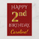 Red, Faux Gold 2nd Birthday + Custom Name Postcard