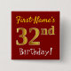 Red, Faux Gold 32nd Birthday, With Custom Name Button