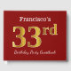 This guest book design features the ordinal number "33rd" with a faux/imitation gold-like appearance. It also features a personalized name, and a red colored background. It could be used at a party for somebody celebrating their thirty third birthday. [~Z0000055]