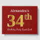 This guest book design features the ordinal number "34th" with a faux/imitation gold-like appearance. It also features a customized name, and a red colored background. It could be used at a party for somebody celebrating their thirty fourth birthday. [~Z0000055]