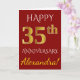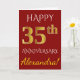 Red, Faux Gold 35th Wedding Anniversary + Name Card