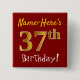 Red, Faux Gold 37th Birthday, With Custom Name Button