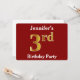Red, Faux Gold 3rd Birthday Party + Custom Name Invitation