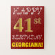 This fun and simple birthday puzzle design features the message "HAPPY 41st BIRTHDAY", with the "41st" having a faux/imitation gold-like color appearance. It also features a customized name, and a red colored background. It could be a fun and special way to deliver a personalized birthday greeting to somebody who is celebrating their forty first birthday. [~Z0000200]