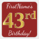 Red, Faux Gold 43rd Birthday + Custom Name Sticker