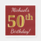 This simple paper napkin design features a message like "Michael’s 50th Birthday!", with the "50th" having a faux gold-like appearance, on a red colored background. The name can be customized. It could be used at a birthday party for somebody who is celebrating their fiftieth birthday. [~Z0000080]
