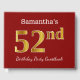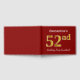 This guest book design features the ordinal number "52nd" with a faux/imitation gold-like appearance. It also features a customized name, and a red colored background. It could be used at a party for somebody celebrating their fifty second birthday. [~Z0000055]