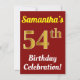 Red, Faux Gold 54th Birthday Celebration + Name Invitation