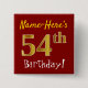 Red, Faux Gold 54th Birthday, With Custom Name Button