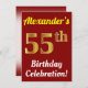 Red, Faux Gold 55th Birthday Celebration + Name Invitation