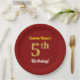 Red, Faux Gold 5th Birthday + Custom Name Paper Plates