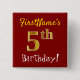 Red, Faux Gold 5th Birthday, With Custom Name Pinback Button