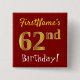 Red, Faux Gold 62nd Birthday, With Custom Name Button